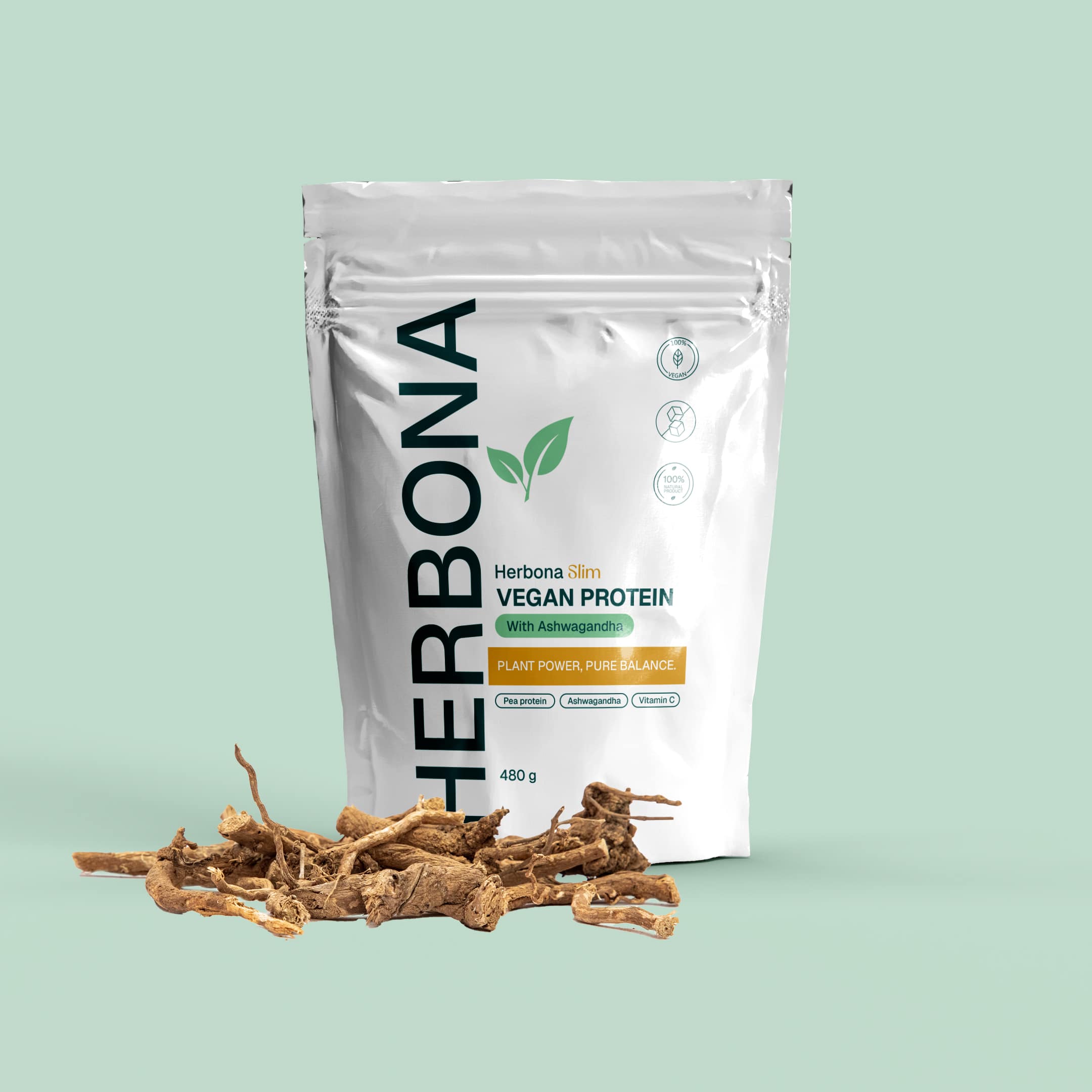 Herbona Slim Vegan Protein sadrži pažljivo birane biljne proteine graška, u kombinaciji sa ekstraktom korena ašvagande (Withania somnifera) i vitaminom C.